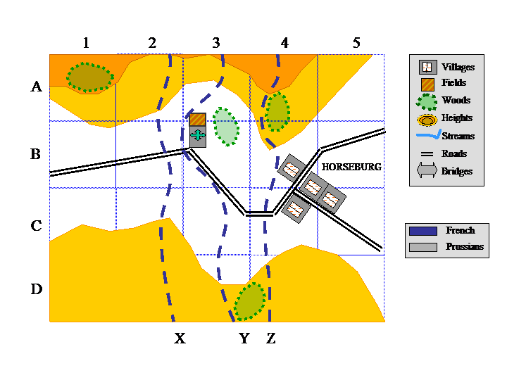 Y and Z and 1/3 between Z and the eastern side of the battlefield”.