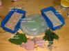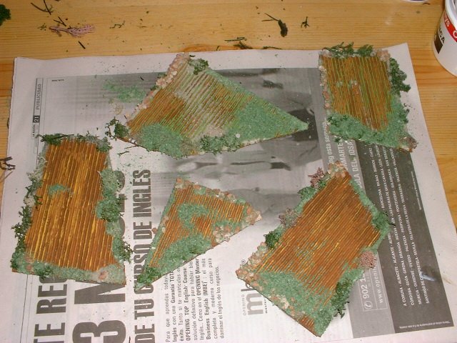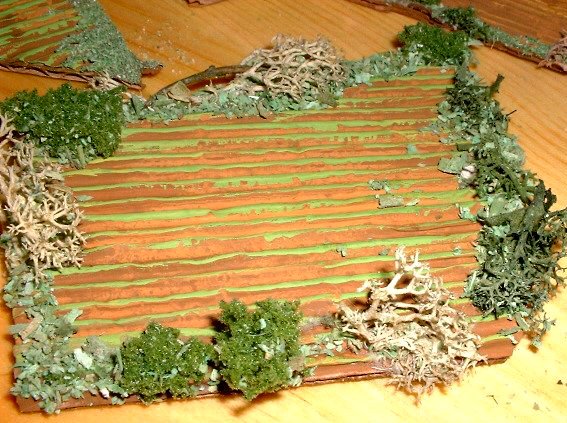 The field borders are decorated with green sawdust, liche, stones (litter cat)....applied with white glue