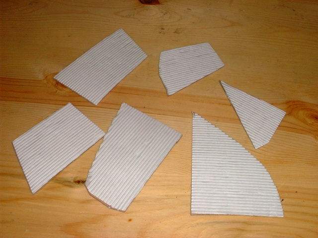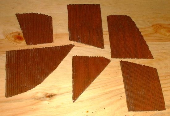 Cut the corrugated carboard into a polygon shape and paste it on 2mm carboard (cut in the same shape) with white glue